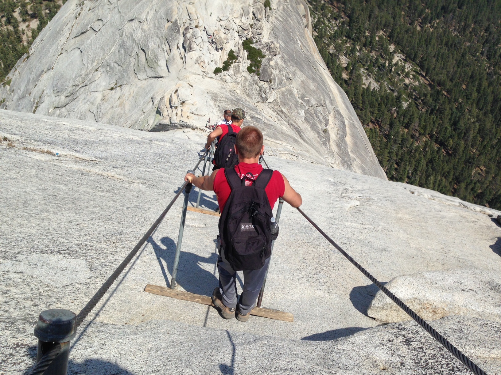 - SHOES: Make sure you have a pair of shoes amenable to slicker-surfaced granite for the final “pitch” up the cables. You will not regret that. If you don’t, get ready to look like you’ve skipped every day but “arm day” at the gym.