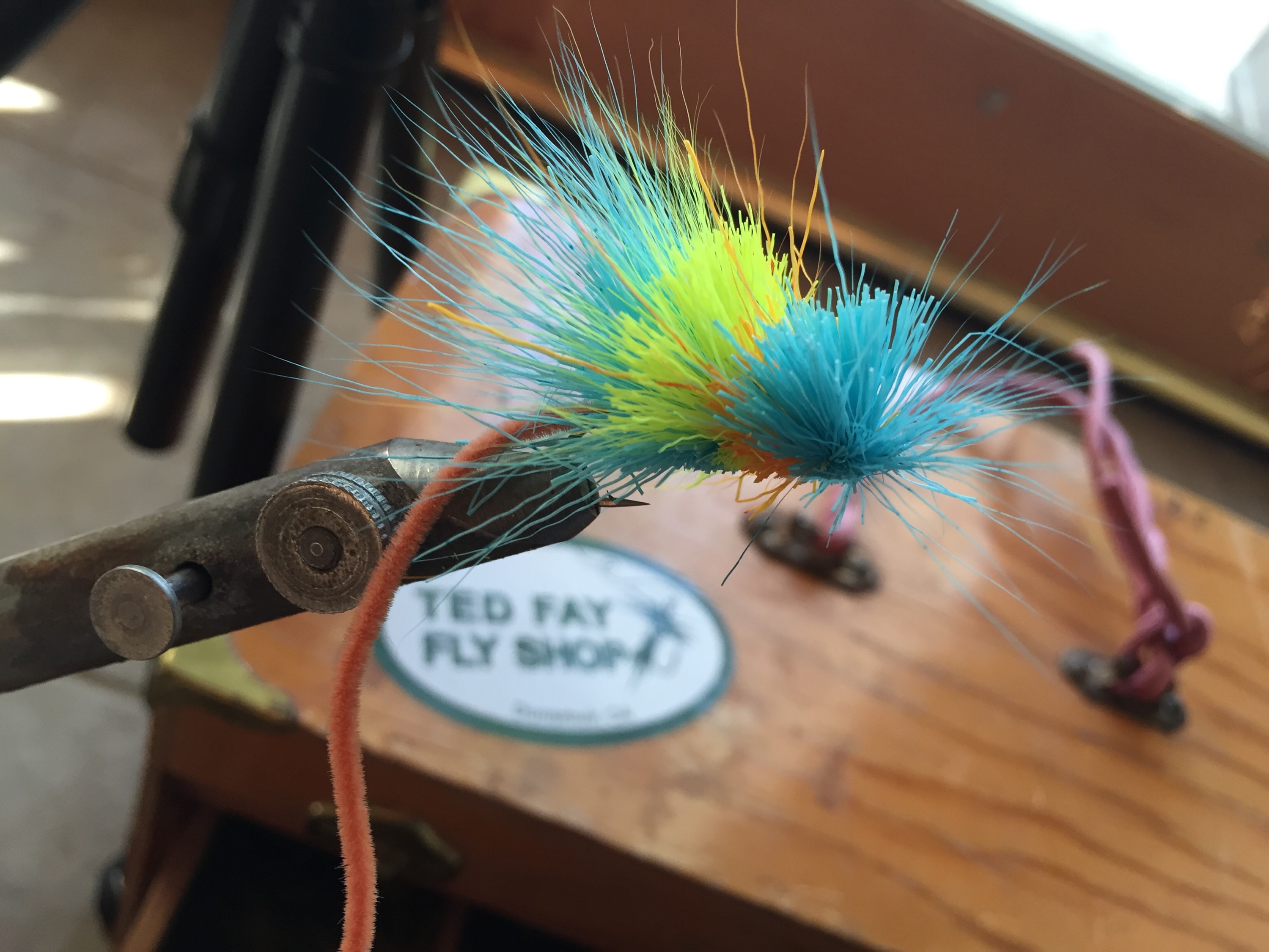 The uninitiated might balk at this even being viable as trout lure. But you’re wrong. because this is skittered along the top of the water, to replicate a mouse swimming. And the color is almost inconsequential, because the trout see it as a shadowed profile from underneath.